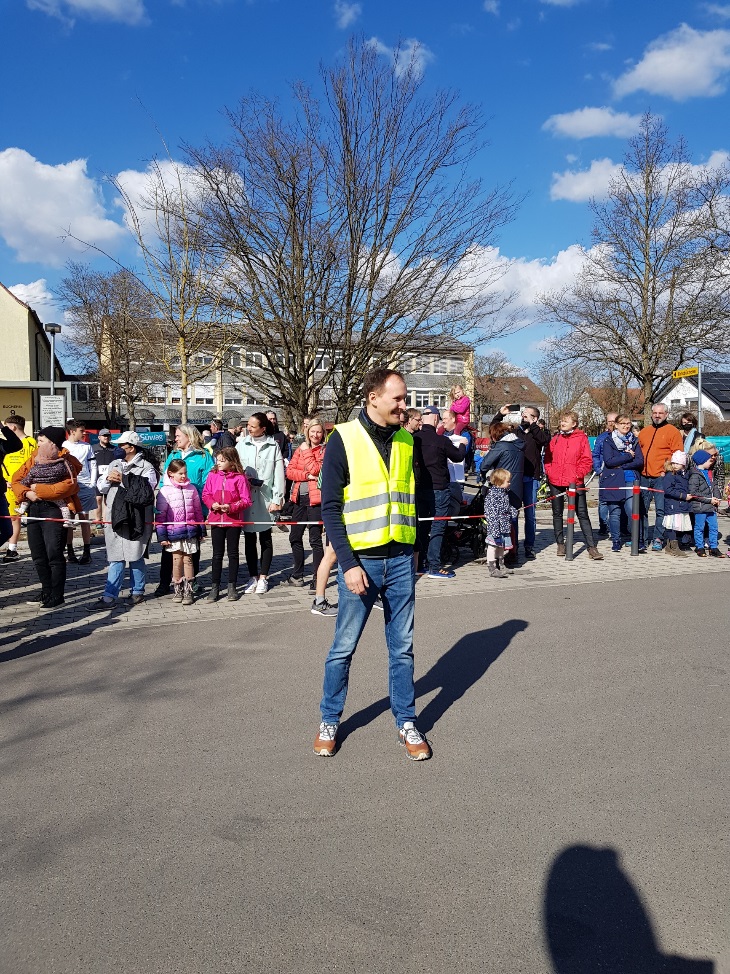 Hier unser 1. Vorsitzender Kai Müller beim Helfereinsatz im Zielbereich mit auffälliger Warnweste.