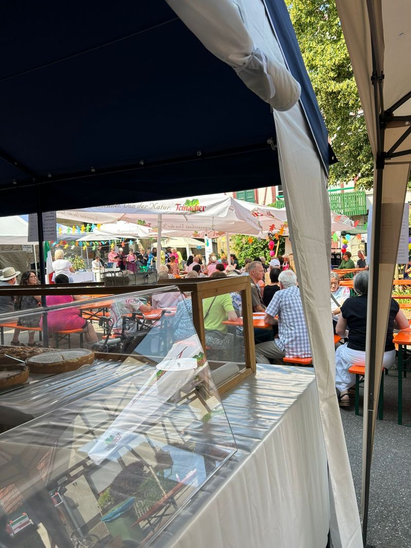 Das Dorffest am 18.06.2023 in Pleidelsheim, war ein wunderschöner Tag. Um den Kirchplatz herum gab es unterschiedliche Stände mit ganz unterschiedlichen Essen. Von Pizza bis Crêpe, alles dabei. Auch die Turnabteilung vom GSV Pleidelsheim hatte einen Stand. Dort wurden Getränke, Kaffee und Kuchen und andere leckere Sachen verkauft. Alle freiwilligen Helfer hatten sehr viel Spaß an diesem Tag, es wurde viel gelacht. Und auch das sonnige, warme Wetter zauberte allen ein Lächeln ins Gesicht.