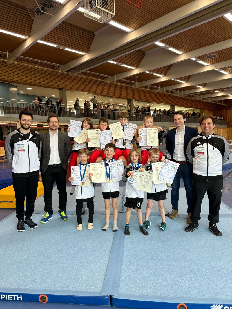 In der Altersklasse E8 (Jahrgang 2016) erturnte sich Jakob Seidenspinner 34.30 Punkte und erreichte damit den 4. Platz, hinter Lias Junimann, der sich mit 38.25 Punkten Bronze sicherte. Bei den 9-Jährigen (E9, Jahrgang 2015) konnten sich Lias Klein (42.75 Punkte) und Arthur Buck (45.30) gut behaupten und damit die Plätze 8 und 7 belegen.